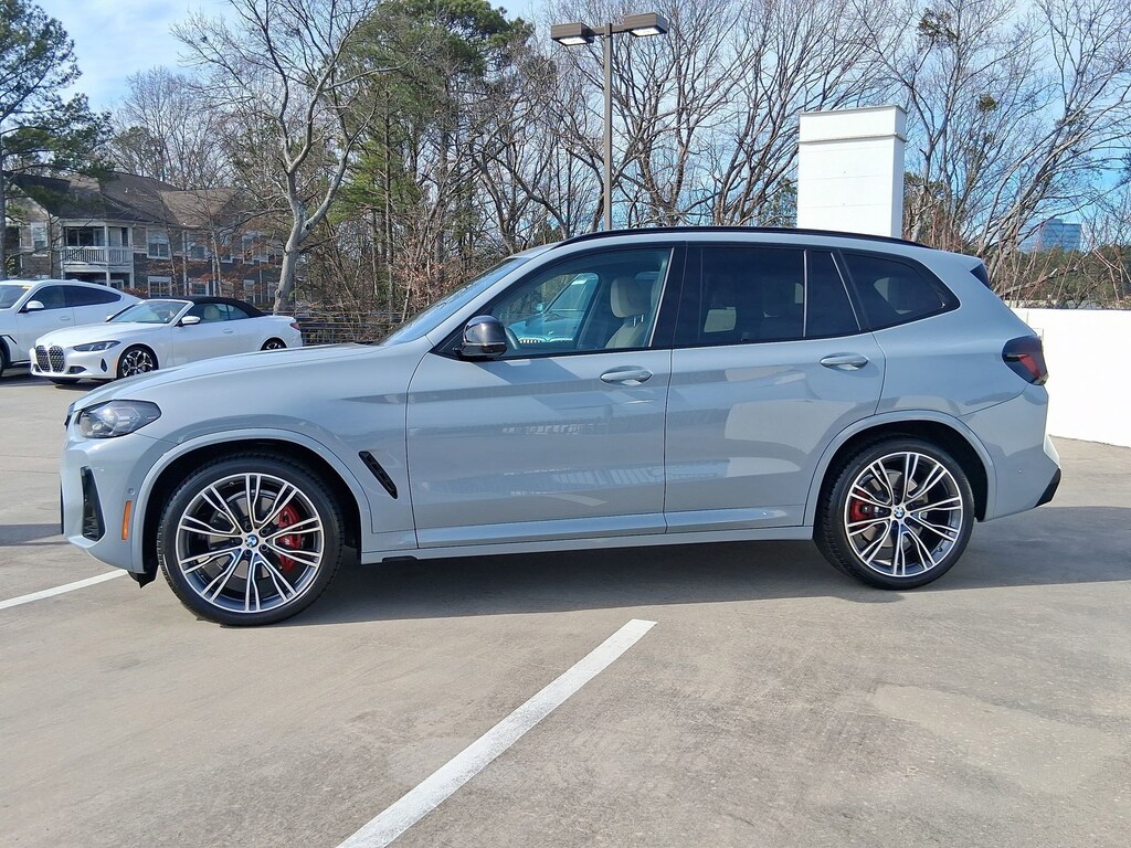 WIRELESS CHARGING, WHEELS: 21" X 8.5" FR & 21" X 9.5" RR (STYLE 726I) -inc: BMW Individual V-spoke bi-color orbit grey, Increased Top Speed Limiter, Tires: 245/40R21 Fr & 275/35R21 Rr Performance, SHADOWLINE PACKAGE -inc: M Shadowline Lights, Extended Shadowline Trim, REMOTE ENGINE START, PARKING ASSISTANCE PACKAGE -inc: Active Park Distance Control, Surround View w/3D View, Rear View Camera, Parking Assistant Plus, M SPORT BRAKES W/RED CALIPERS, HEATED FRONT SEATS, FINE WOOD OPEN-PORED ASH GRAIN TRIM -inc: pearl chrome accent, DRIVE RECORDER, CANBERRA BEIGE, PERFORATED SENSATEC UPHOLSTERY. This BMW X3 has a powerful Intercooled Turbo Gas/Electric I-6 3.0 L/183 engine powering this Automatic transmission.
