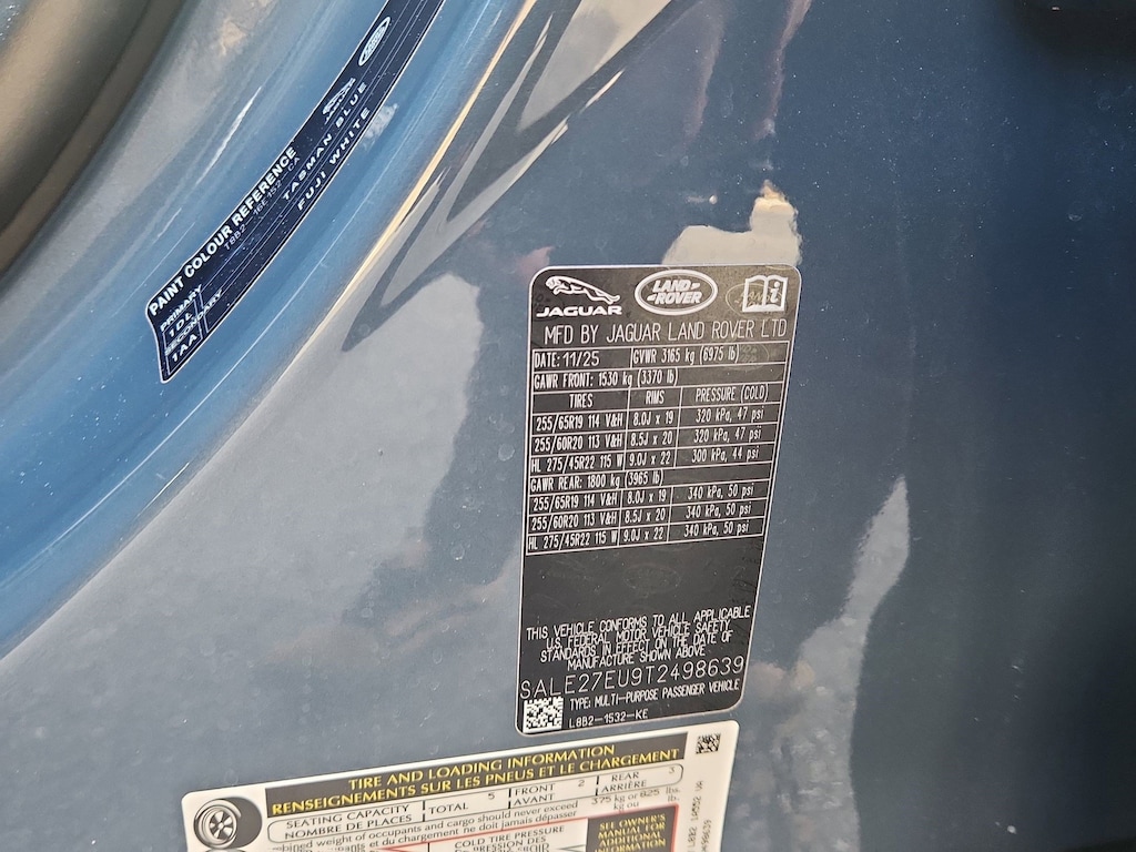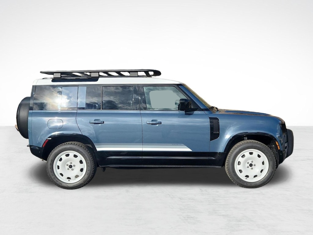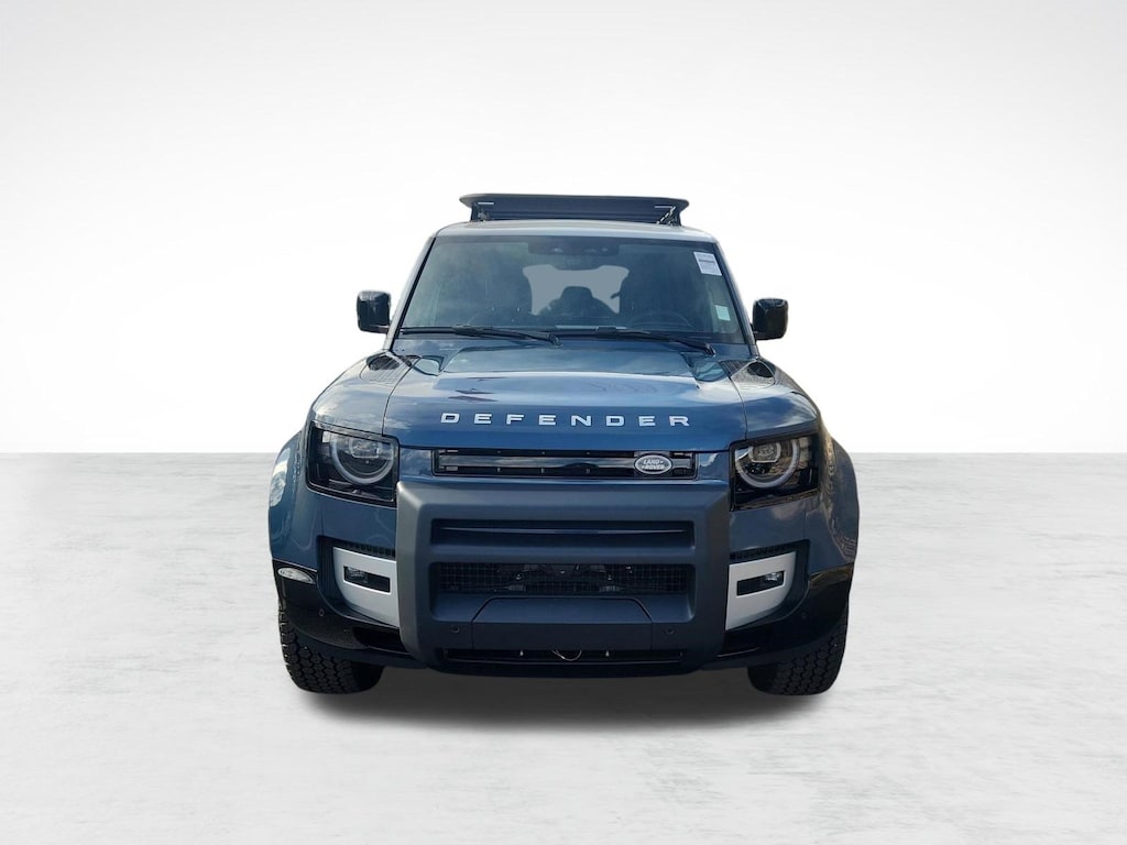 This Land Rover Defender 110 delivers a Intercooled Turbo Gas/Electric I-6 3.0 L/183 engine powering this Automatic transmission. WHEELS: 20" GLOSS WHITE STYLE 9013, TOW HITCH RECEIVER, TASMAN BLUE METALLIC.